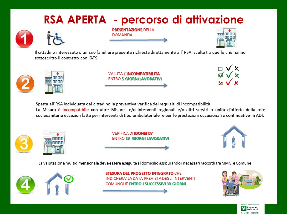 Possono erogare la misura, sia a domicilio della persona che all’interno delle unità d’offerta, le RSA lombarde accreditate, anche mettendo eventualmente a disposizione i CDI, se ubicati presso le sedi stesse delle RSA.