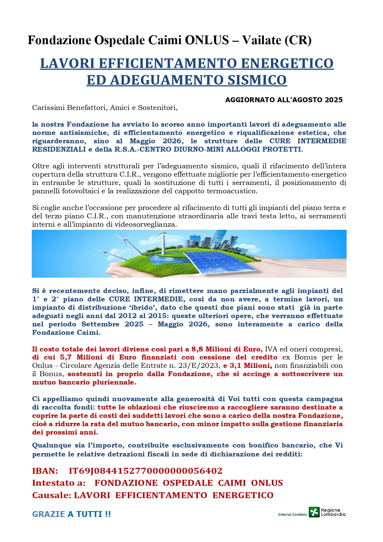 La Fondazione Caimi è accreditata presso il Sistema Socio-Sanitario Lombardo